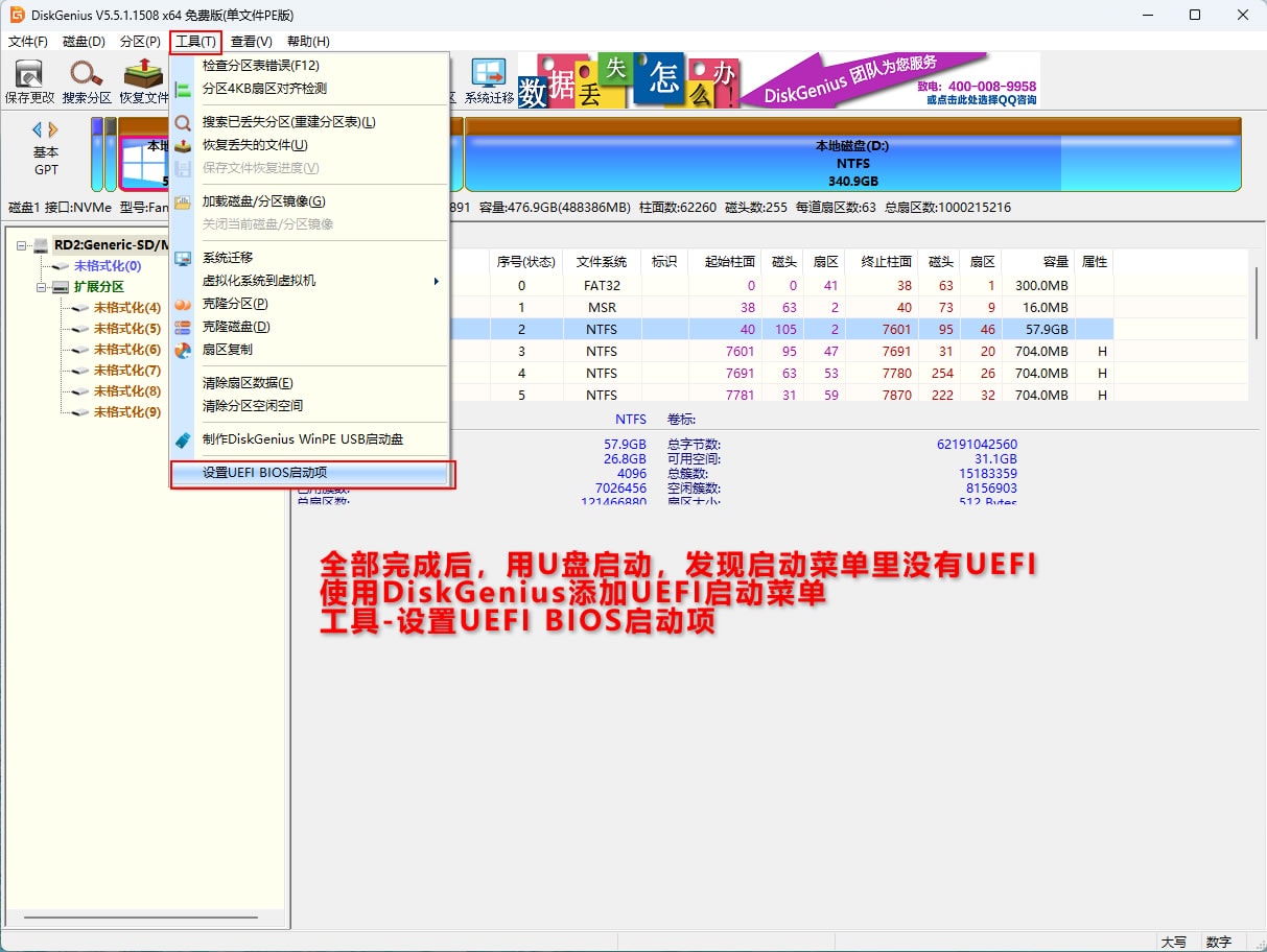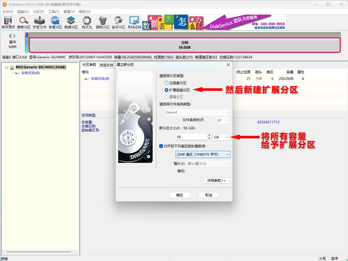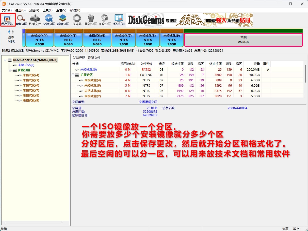 准备一个大点的空优盘,用diskgenius分区,教程如图。