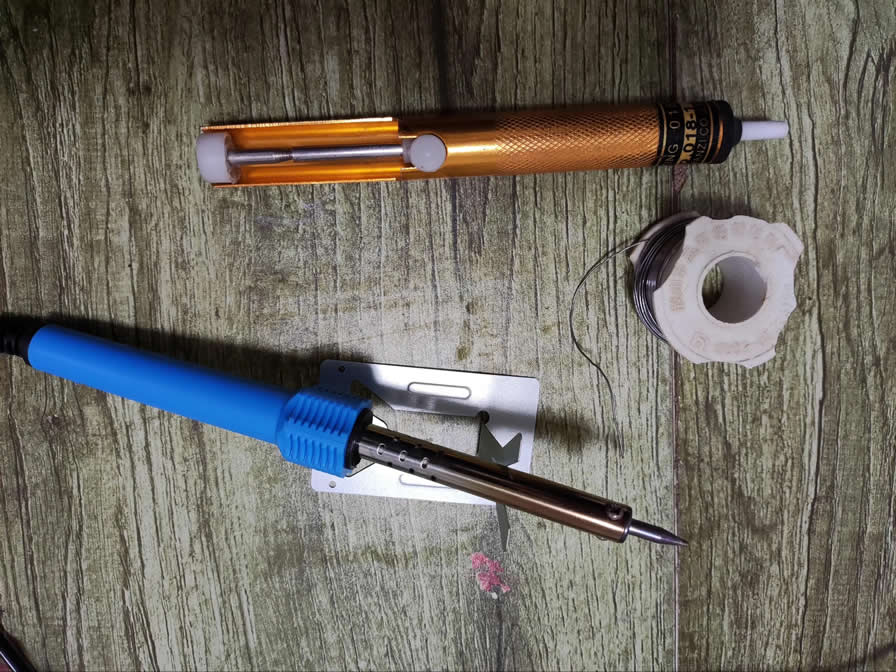 准备工具,焊锡丝,吸锡器,烙铁一个。